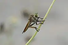 Insectivorous birds are a common and major predator of the spruce budworm, mainly preying on the larvae and pupae. Examples of species include sparrows, thrushes, and overstory warblers. Bird distribution will change to reflect budworm density in the forests.[28] A 1989 study found that the highest populations of spruce budworm larvae and pupae occur in June and July. This coincides with the period when some species of birds require maximum food to feed their young. As a result, predation by birds helps control the growth of budworm predation.[9] Other major predators include various invertebrates, primarily spiders.[28]