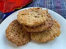 Chremslach (Yiddish: כרעמזלעך, IPA: [ˈχrɛmzləχ]; singular chremsl or khremzl, Yiddish: כרעמזל, IPA: [ˈχrɛmzl̩]), is a Jewish food eaten on Passover.[1] Chremslach are small thick pancakes or fritters made of potato or matzah meal.[2][3][4] Chremslach can also be more dessert-like, including ingredients like dried fruit and nuts.[4]