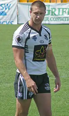 Chris Hicks (born 19 March 1977) is an Australian former professional rugby league footballer who played in the 1990s, 2000s and 2010s. He last played for the Parramatta Eels of the National Rugby League (NRL).[1][2] A former New South Wales country origin representative fullback or wing, he has previously played in the NRL for the Penrith Panthers and Manly-Warringah Sea Eagles as well as playing for Warrington Wolves of the Super League.
