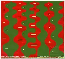 He makes colorful, abstract paintings, often with elements of collage and text.[4][5] His work is casualist, and employs various media.[6][7] He considers it to be influenced by the Catskill Mountains, which he often visited when young.[8][7][9][10]