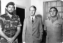 Schulenburg was known as Schulie. A South African by birth, he joined the Rhodesian Army as a sergeant in the Rhodesian Light Infantry. He later transferred to the Selous Scouts as a lieutenant and was key in establishing a dedicated reconnaissance troop in that unit.[1] The Selous Scouts often conducted clandestine operations within Rhodesia and abroad during the Rhodesian Bush War. Schulenburg often participated in these operations, specialising in long-range reconnaissance missions in which he would be accompanied only by a single black scout.[2] At least one of these missions took him deep into neighbouring Mozambique.[3] On another occasion, as a lieutenant, commanding a remote post he established a small poultry farm to provide his men with fresh eggs. The poultry relocated frequently with the unit.[4]