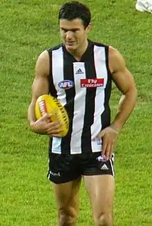 Chris Tarrant (born 18 September 1980) is a former Australian rules footballer who played for the Collingwood Football Club and the Fremantle Football Club in the Australian Football League (AFL). He announced at the end of the 2010 AFL season that he would return to Melbourne for personal reasons and would not extend his contract with Fremantle for the 2011 season.[1] He returned to the Collingwood Football Club via a trade. He made his name as a key forward, but upon his move to Fremantle in 2007, Tarrant found a new position in the backline. Tarrant was noted for his spectacular high marking, athleticism and pace on a lead.