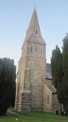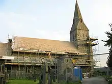 The first church to be built on the site was in 1811.[3] The present church was built between 1853 and 1857.[4] The stalls and prayer desks were designed by the Chester architect John Douglas.[5] By the 2000s the church building had deteriorated and between March and November 2007 repairs and restoration were carried out at a cost of £600,000.[6]