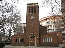 The current church was built in 1958, following total destruction of the previous building in 1941, during the London Blitz. It has been Grade II listed since 2010.[1]