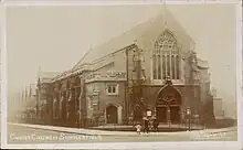 The foundation stone was laid in November 1883 by the widow of Revd George Lea, vicar of St George's Church, Edgbaston. The church was built between 1883 and 1885 in a Perpendicular Style to designs by the architect J.A. Chatwin.[3] It was consecrated on 30 April 1885.
