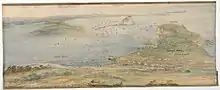 ![]() Newcastle penal settlement from Prospect Hill, c. 1810. | |