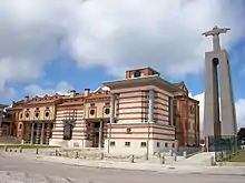 To the south of the monument is the Sanctuary building, comprising a rectangular body of three wings, with facades covered with masonry brick.[6] In 1987 there was a plan to construct 18 different buildings and spaces around the monument (including a restaurant, lookouts, a commercial complex, a parking area and a sanctuary), of which only a few of these structures were built.[5] The most notable was the construction of the visitors' centre and the Sanctuary building.