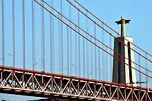 The Sanctuary of Christ the King[1][2][3] (Portuguese: Santuário de Cristo Rei) is a Catholic monument and shrine dedicated to the Sacred Heart of Jesus Christ overlooking the city of Lisbon situated in Almada, in Portugal. It was inspired by the Christ the Redeemer statue of Rio de Janeiro, in Brazil, after the Cardinal Patriarch of Lisbon visited that monument. The project was inaugurated on 17 May 1959. The giant statue was erected to express gratitude because the Portuguese were spared the direct destructive effects of World War II.