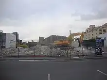 In August 2011, the Christchurch Convention Centre and several other public buildings were "recommended for demolition" because of extensive damage suffered in the February 2011 Christchurch earthquake[4] and an aftershock on 13 June.[5] The Convention Centre was demolished in March / April 2012 (see photo).