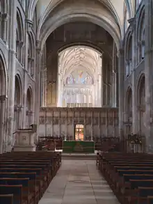 In 1819 lath and plaster vaulting was installed in the nave, but a year later the vaulting of the south transept was found to be unsafe and had to be dismantled. In the late 19th and early 20th centuries extensive repairs were carried out, which included the insertion of tie-rods in the tower and the underpinning of the nave and south choir aisle walls in 1906. In 1912 a new floor was laid in the nave consisting of 6" of concrete, an inch of fine cement and wooden blocks on top.[7]