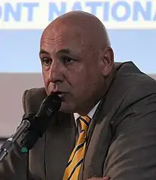 After declaring that he had broken with his former activism, he joined the Front National in 2008 and became a local branch leader from October 2010 to May 2011 and from March 2013 onwards.[5] He has been a Front National candidate in every election since 2008 and in 2013, the Front National chose him to lead its list for the municipal elections in Nantes (the 6th town of France).[6][7] He is the father of Gauthier Bouchet, the FN municipal councillor of Saint-Nazaire.