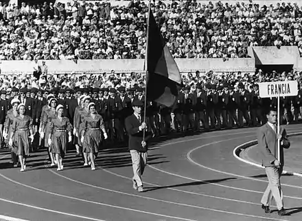 D'Oriola took part in the 1948, 1952, 1956 and 1960 Olympics, serving as the Olympic flag bearer for France in 1960. Between 1947 and 1958 he won four gold and two silver medals at Summer Olympics and eight world titles in the foil. At the 1960 Olympics he also competed in the team épée.[1] He also competed at the Mediterranean Games in 1951 where he won a gold medal in the individual foil event and a silver medal in the team foil event, and in 1955 where he won gold medals in the individual and team foil events.[2] He won the French national title in the team épée event in 1970. In 1972, he was awarded the French Legion of Honor. After retiring from competitions he acted as a fencing judge and served as vice-president of the French Fencing Federation.[1]