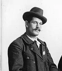 Christian Kaufmann made additional climbs in 1902 that deserve mention. On May 22, he and Christian Häsler guided Walter Weston (1861-1940) and his wife Francis (1872–1937) to the summit of Mt. Stephen; both Westons were experienced mountaineers and are credited with introducing mountain climbing in Japan during the late-nineteenth century.[57] Walter commented that Kaufmann's "strength & skill are only equalled by his care & attention. He well deserves the place he has gained at the top of the tree of his profession."[58] Later in the season (September 1902), Kaufmann took George B. Dorr[59] to the top of Mt. Stephan and across Abbott's Pass. Dorr was an active conservationist and noted philanthropist who is credited with the establishment of Acadia National Park.