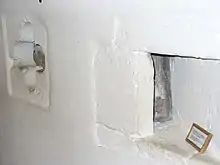 The letters record that she should be now kept more securely and it is thought that this is the reason that the only doorway was replaced with a solid wall.[2] The cell had two small openings into the church. The first was cruciform and it was intended to allow Carpenter to take communion. The other was a squint that allowed her to see out – but only in the direction of the church's altar.[2] It is thought that there was a third window to the outside world, but this is no longer extant.[3] This window would have been made too small for her to leave and its purpose would have been to allow her to be fed and watered, and for her bodily wastes to be removed. It is not known what happened to Carpenter after this date, but the usual practice was to bury anchorites where they had lived and died. After an anchoress died, her cell would have been opened and a grave would be dug under her cell.[2]