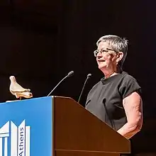 ![]() Christine Mackenzie at the World Library and Information Congress in Athens, 2019 | |