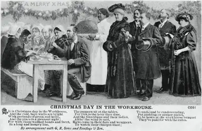 "In the Workhouse: Christmas Day", better known as "Christmas Day in the Workhouse", is a dramatic monologue written as a ballad by campaigning journalist George Robert Sims and first published in The Referee for the Christmas of 1877.[2] It appeared in Sims' regular Mustard and Cress column under the pseudonym Dagonet and was collected in book form in 1881 as one of The Dagonet Ballads,[2] which sold over 100,000 copies within a year.[3]