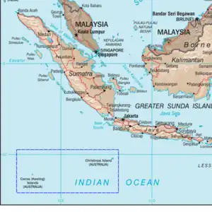 The Christmas and Cocos Islands tropical forests ecoregion (WWF ID: IM0110) covers forested areas of Christmas Island and North Keeling Island, two small seamount islands south of the Indonesian island of Java. The forests of these two islands share tree species of the Indo-Pacific and Melanesian types on nearby islands, the forests of Christmas Island and North Keeling Island are unique in how they reflect the effects of large populations of terrestrial red crabs (Gecarcoidea natalis). Because of the remoteness of the islands, there are many endemic species.[1][2] [3] [4]