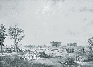 View of the Paestum temples, drawn whilst there with Goethe.