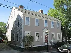 The Christopher Rhodes House is an historic house at 25 Post Road in the Pawtuxet village of Warwick, Rhode Island. The 2+1⁄2-story timber-frame house was built c. 1800 by Christopher Rhodes, a prominent local businessman and cofounder with his brothers of the Pawtuxet Bank. The house was probably one of the finest Federal style homes of its time in the village, and is now one of the few to survive from that time. It has a side-gable roof, and is five bays wide with a center entry. The entry is topped by a fanlight and moulded architrave, and framed by Ionic pilasters.[2]