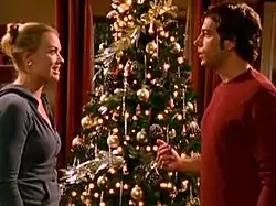 At the Buy More Christmas party, Anna admits she was not embarrassed about Morgan, she was embarrassed about who she is when she's with her parents because she changes her looks and behavior to fit what they want her to be and is not herself. The two reconcile and sneak off to have sex in the break room.