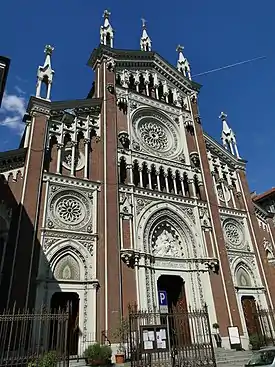 The first stone of the church was laid on 24 November 1904 and construction was completed by the contractor Pier Vincanzo Bella. Though the vaults of the nave were not yet completed, the church was consecrated on 24 May 1913 by Cardinal Agostino Richelmy, Archbishop of Turin.[2]