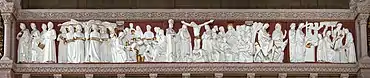 The most spectacular work of Carli Petrucci is unquestionably the monumental frieze of The Apotheosis of the Virgin Mary, installed in 1927. It presents 27 paintings depicting the life of the Blessed Virgin, religious institutions and the bishops of Montreal as well as the founders of this city.