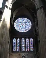 In the 13th century, the church had stained-glass windows of high quality. Only five of these, made around 1235, remain; they are the lancet windows of the north transept. These represent episodes from the life of Saint Peter (the first two on the left) and Saint Andrew (the other three).