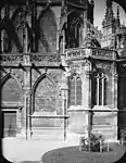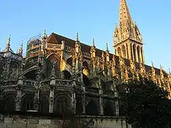 The eastern apse of the church was built by Hector Sohier between 1518 and 1545.[3] The interior choir and the exterior apse display an architecture that embodies the transition from Gothic to Renaissance.