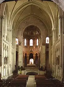 The Church of Sainte-Radegonde (French: Église de Sainte-Radegonde) is a medieval Roman Catholic church in Poitiers, France, dating from the 6th century. It takes its name from the Frankish queen and nun, Radegund, who was buried in the church. Considered a saint, the church became a place of pilgrimage by those devoted to her heavenly intercession. The current church, constructed from the 11th to 12th centuries, was built in a combination of Romanesque and Angevin Gothic architectural styles.[2]