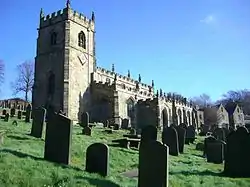 The original Norman church was an uncomplicated two cell building. A square bell tower was added in the 14th century before it was largely rebuilt in the Gothic Perpendicular style during the 1480s, using some of the original masonry which consisted of local gritstone. The interior of the church changed drastically under the influence of the Puritans during the English Civil War, when statues, wall paintings and stained glass were destroyed and the walls whitewashed.