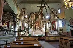 The church has three naves and a three-wall apse, seven ornate and colorful altars. The high altar was created c. 1752, the altar of St. Michael c. 1785. The plasticity of the wooden altars imitates stone architecture.[6]