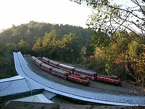 Chushan station was opened on 13 January 1986 as the second station and terminus of a newly constructed 3 kilometers (approx) long branch line off the then Alishan Zhaoping Mianyue line ( which actually ran through to Shishou railway station). The old line from the junction up through Mianyue has been subsequently closed due to damage caused by the 1999 Jiji earthquake, leaving the Chushan service as the only line operating east of Zhaoping railway station. That 3 Kilometer branch from the new junction to Chushan was first Taiwanese built section of mountain railway, all the other lines being built during the period when Japan controlled Taiwan. At an elevation of 2451 meters above sea level, Chushan Station has the highest altitude of any railway station currently operating in Taiwan. The branch line and the two new stations, ( the other station being Duigaoyue railway station ), were constructed to handle increased tourist traffic visiting to watch the sunrise from nearby viewing platforms. This increase in visitors resulted from the improved access provided by the opening of the Alishan Highway 台18線 and 台21線 into the Alishan National Forest Recreation Area.[2] Trains run to Chushan from Alishan railway station via Zhaoping, a journey of 6.25 kilometers.