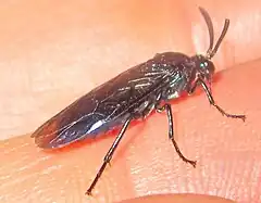 Cibdela janthina is a sawfly of the family Argidae. This species originates from Sumatra in South-East Asia but had also been introduced to La Réunion in 2007 for biological pest control of Rubus alceifolius, a Rosaceae species that had become an invasive species.