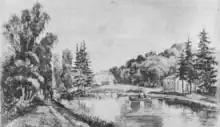 In 1810 the farm was sold by the Radziwiłłs to Andrzej Serwiński for 360,000 złoty. Serwiński, had been secretary to Michał Kazimierz Ogiński, the Grand Hetman of Lithuania, and had studied architecture in Italy, had inherited a fortune of 1,500 ducats in Ogiński's will. This, together with profits made from leasing the land of Michał Walicki, an associate from his travels around Europe who had been a functionary of the Polish Kingdom and was known as a researcher and philanthropist, enabled Serwiński to purchase the farm and have a palace constructed there.[1]
