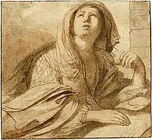 The Sibyl was mentioned by the Campanian playwright Naevius in his play Carmen belli penici written between 235 and 204 BC.[3] This is one of the earliest references of the Italian Sibyl.[3] Naevius also named the Cimmerian Sibyl in his books of the Punic War and Piso in his annals (Varro in Lactantius Inst. 1.6.9). An account also cited that it was the dramatist who accompanied Aeneas in the late third century B.C. when he visited the Cimmerian Sibyl.[4]