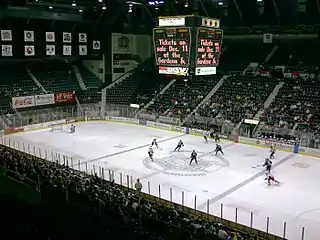 The Cincinnati Cyclones played in the East Coast Hockey League for two seasons and the IHL for five seasons at the Cincinnati Gardens. When the Cyclones moved to U.S. Bank Arena in 1997, the AHL returned to the building for the third time with the creation of the Cincinnati Mighty Ducks, an affiliate of the NHL Mighty Ducks of Anaheim and Detroit Red Wings, who played in the building until 2005.