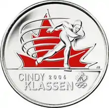 - ↑ "Mint honours speedskater Cindy Klassen with coin". CBC News. January 5, 2010. Retrieved 2010-02-26.