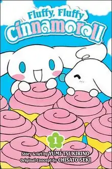 A five-volume manga of the series, titled Fluffy, Fluffy Cinnamoroll (ふわふわ♥シナモン, Fuwafuwa ♥ Shinamon) was written by Chisato Seki and illustrated by Yumi Tsukirino. It was published in Japan from 2004 to 2007 by Shogakukan and serialized in the monthly magazine Pucchigumi. In 2008, three special volumes of the manga came out in Japan called "Fluffy, Fluffy Cinnamoroll Color Edition" (カラー版 ふわふわ♥シナモン Karāban Fuwafuwa Shinamon) which had all the pages for each manga in color and has brand new stories. In 2005, a spin-off manga series that focused on The Cinnamoangels was made from 2005 - 2008 called "Puri Kawa Shinamonenjerusu!!" (プリ☆かわ☆シナモンエンジェルス!!) which focuses on Mocha, Chiffon, and Azuki doing various activities and trying to attract boys. Viz Media started translating the manga in 2011 and was released to English-speaking countries in 2012.[6]