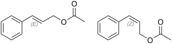Cinnamyl acetate (3-phenylprop-2-enyl acetate) is a chemical compound of the cinnamyl ester family, in which the variable R group is substituted by a methyl group. As a result of the non-aromatic carbon-carbon double bond, cinnamyl acetate can exist in a Z and an E configuration:[9]