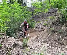 The almost 5 kilometers track is divided into 2 different routes, Happy High and Happy Low. Happy High starts from the highest point of the mountain, above the Cavagnano pond. It is the most difficult track of the two, with various technical points and jumps. This track is recommended for beginner riders to help them gain more confidence and speed while still enjoying the panoramic views that it has to offer. While this set of trails offers inexperienced bikers an opportunity to better their skills, it also suits expert bikers. The trail is featured with double jumps, drops, a rock garden, and many turns, all linked by curves and parabolas that keep the rhythm of biking fast. It is only biked downhill and it is advised to bike them on AM, Cross Country, and Fat tires bikes. Happy low is much easier if compared to Happy High. This mountain biking trail is suitable for every biker, and it is also ideal to get familiar with the pace and the skills required for mountain biking. The entry point of this trail is situated right behind the elementary schools of Cuasso al Monte.[56]