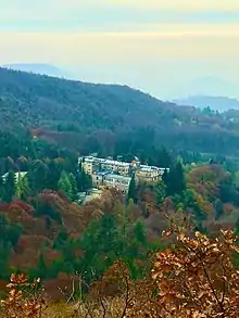 This hospital is located within the park, precisely at 733 meters of altitude. The building dates back to the first half of the 1600s when the religious congregation of the Carmelitani Scalzi chose this place, called "desert", to build a convent. At the beginning of the 19th century, the Italian Red Cross of Milan turned the building into the headquarter of the Sanatorium Institute for lung diseases. In 1971 it was established as a hospital and in 1981 it passed to the USSL 4 of Arcisate. The hospital was subsequently converted in to a rehabilitation facility that accommodates two areas of specialist rehabilitation, neurology and pulmonology. Each ward includes rehabilitation activities and related services.[19] At the beginning of March 2020 the ASST Sette Laghi (Territorial Healthcare Company) identified the Cuasso Hospital as a facility intended to accommodate COVID-19 patients from all over the region who are recovering from the acute phase of the disease, or who require further monitoring. The facility was set up in two weeks and it was totally converted by its technical office.[20]