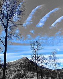 Mount Val de'Corni is a wide undulating ridge with the highest point at 993 meters and has a prominence of 45 meters.[27] Although it is squeezed between Mount Poncione and Mount Piambello, this mountain has several points of interest, especially for the presence of many curious porphyry, similar to those of Monte Martica on the other side of the valley. The peak does not offer particular attractions since it is completely obstructed by vegetation.[28] The ridge forms the watershed between the Valganna and the Cavalizza valley offering extensive views of the western Alps, the Monte Generoso area, and the mountains of the Province of Como and Province of Lecco to the east.[29]
