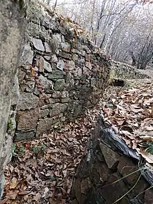 Several historic settlements have been identified in the park, some dated back to the prehistoric period. An old brewery, an example of the Liberty Architecture, is also located within the Cinque Vette Park.[5] The area gained relevancy before and during the First World War, because a line of forts, bunkers and trenches, originally named the Great North Frontier, was built through the park area. The building of the North Frontier began in 1862. It aimed at protecting the Italian Kingdom and especially the cities of Milan, Turin, Brescia, and Genoa (the port of Genoa, along with these other cities, was the main focal point for the Italian commerce and economy) from possible Swiss, German and Austrian invasions. The name of the fortification derives from the army general Luigi Cadorna, who supported the need and followed its construction during World War I.[8] The main purpose of the Great North Frontier was defending the Italian territories from the attack of the Austrians, who had been in conflict with the northern Italian populations before, as in the Battle of Magenta. It involved a labor force of 40 thousand workers and hundreds of millions of old Italian Lira. None of these forts and war facilities were actually involved in a battle until World War II. The steel and cement line, later regarded by the historians as the Italian Maginot Line, is now become a peaceful and family friendly trail of the Cinque Vette Park, indicated by its name: the "Sentiero di Pace", literally "Trail of Peace".[9]