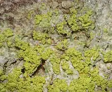 1. Marbach, Bernhard (2000). Corticole und lignicole Arten der Flechtengattung Buellia sensu lato in den Subtropen und Tropen. Bibliotheca Lichenologica (in German). Vol. 74. Berlin/Stuttgart: J. Cramer. p. 158. ISBN 978-3-443-58053-7.