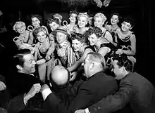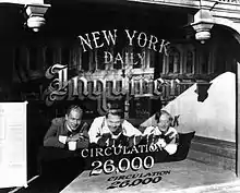 Additionally, Charles Bennett appears as the entertainer at the head of the chorus line in the Inquirer party sequence,[13]: 40–41 and cinematographer Gregg Toland makes a cameo appearance as an interviewer depicted in part of the News on the March newsreel.[14][15] Actor Alan Ladd, still unknown at that time, makes a small appearance as a reporter smoking a pipe at the end of the film.[16]