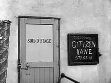 The early footage was called "Orson Welles Tests" on all paperwork.[19]: 69 The first "test" shot was the News on the March projection room scene, economically filmed in a real studio projection room in darkness that masked many actors who appeared in other roles later in the film.[19]: 69 [21]: 77–78 [lower-alpha 6] "At $809 Orson did run substantially beyond the test budget of $528—to create one of the most famous scenes in movie history," wrote Barton Whaley.[25]: 107