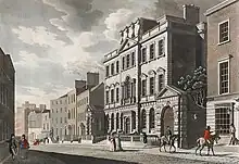 The construction of the building on South William Street, Dublin was driven by two of the most prominent members of the Society of Artists in Ireland, the sculptor Simon Vierpyl and woodcarver and gilder Richard Cranfield.[3] The society itself had only been established in 1764 with 12 members following an attempt by the Dublin Society to create its own annual exhibition and society.[4][5]