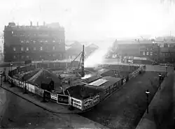 Proposals were made in 1893 to transform the area in front of the station. The demolition of Leeds' Coloured Cloth Hall and Quebec House gave an open space in which a new General Post Office was constructed in 1896 with a public space in front.[2] One proposal was to name the development after John Smeaton, the famous local engineer, but the council unanimously opted to call it City Square, as Leeds was being made a city that year. The initial plan had tramway waiting rooms, and public lavatories welcoming new visitors to Leeds.[3] However, Colonel Thomas Walter Harding (Lord Mayor of Leeds between 1898 and 1899) was so dismayed that he commissioned William Bakewell to design a square more in the style of an Italian piazza, with statues and trees.[4]