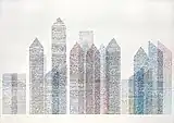 Every invited artist created only one graphic composition accompanied by the author's commentary, a short text with their understanding of a large modern city. All graphic sheets are collected in specially designed publishing boxes. The limited edition of the portfolio included 58 numbered copies, signed by the authors of the compositions, the curator and the publisher.[2]