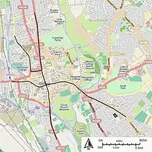 On 28 January 1882 a second route was opened from Carfax to Rackham Lane via Cornmarket Street, Magdalen Street, St Giles Street and Banbury Road.[2] On 15 July 1884 a third route was opened to Kingston Road via Beaumont Street and Walton Street. On 15 March 1887 a route was opened from Carfax to Lake Street, New Hinksey via St Aldate's and Abingdon Road. On 5 November 1898 the Banbury Road route was extended to Summertown, terminating at the junction with South Parade.[3]